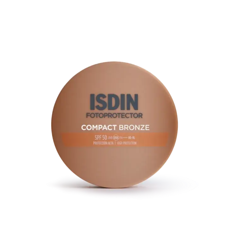 Isdin Fotoprotector Compacto Tom Bronze SPF50+ 10g é um protetor solar facial em formato compacto com cor, que combina proteção solar muito elevada com cobertura natural de longa duração.