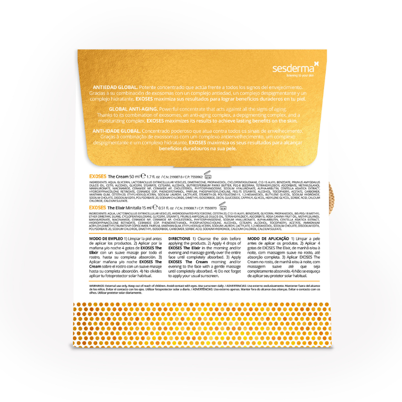 Coffret Sesderma Exoses. Tratamento profissional formulado com exossomas combinados com ativos anti-idade, anti manchas e hidratantes lipossomados.