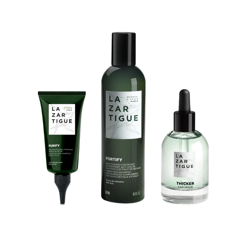 Lazartigue Rotina Redensificante Antiqueda é uma rotina de cuidados para cabelos que enfrentam afinamento capilar.