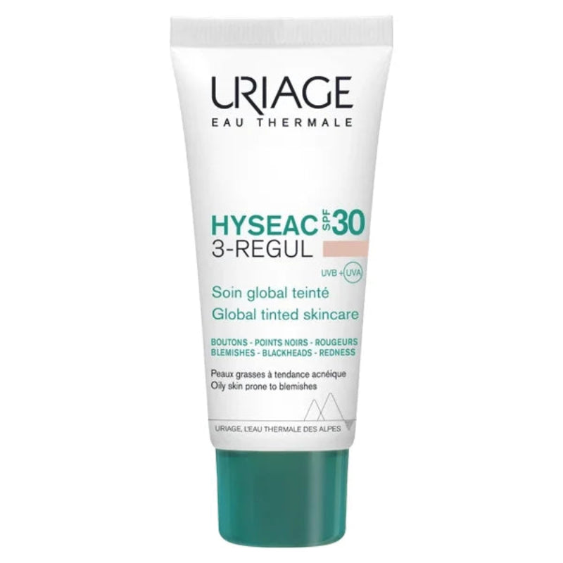 Uriage Hyséac 3-Regul Teint é um cuidado "tudo em um": favorece a eliminação das imperfeições cutâneas (borbulhas e pontos negros), uniformiza naturalmente a tez, oferece alguma cobertura e limita o aparecimento de marcas associadas à exposição solar.