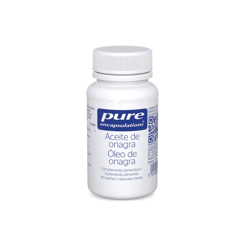 Aceite de onagra prensado en frío (Oenothera biennis) con 9% de ácido gamma-linolénico (GLA), gelatina, emulgente (glicerina), agua.
